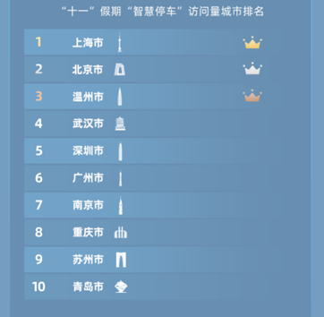 “十一”期間,“智慧停車”訪問量城市排名TOP10