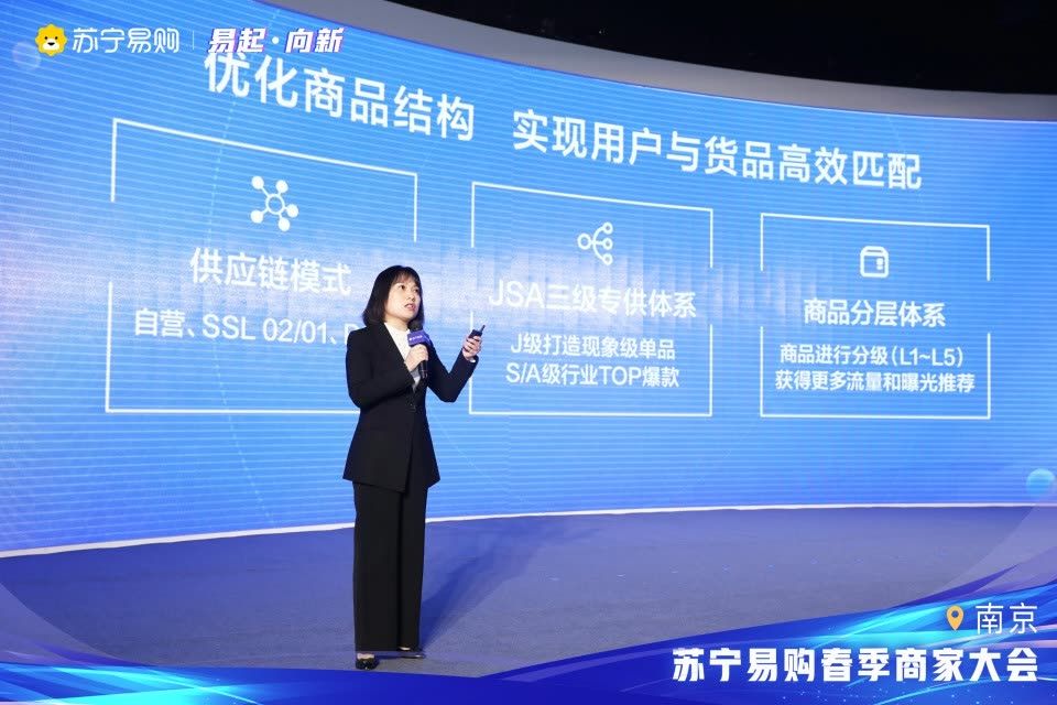 蘇寧易購集團副總裁范春燕首先代表蘇寧易購,向現(xiàn)場參會的合作伙伴表示感謝。