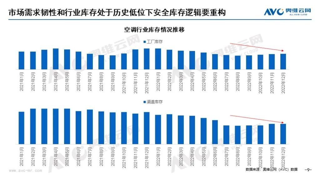 經歷了成本高企與需求不振的雙重打擊,2022年空調庫存處于10年來的最水平。而經歷了2022年7、8月份的結構性缺貨后,企業(yè)安全庫存的邏輯正在重構。此外,空調作為盈利能力最強的單品,在市場行情面臨利好的當下,渠道補貨動力充足。