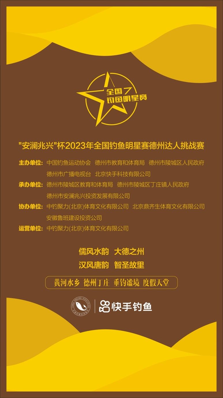 4月28日,由中國釣魚運(yùn)動(dòng)協(xié)會(huì)(下簡(jiǎn)稱“CAA”)、德州市人民政府和快手聯(lián)合主辦的“2023年全國釣魚明星賽山東德州達(dá)人挑戰(zhàn)賽”,即將在德州市陵城區(qū)印象大薛莊景區(qū)開賽,并將在快手賬號(hào)@中國釣魚運(yùn)動(dòng)協(xié)會(huì) 進(jìn)行同步直播。屆時(shí),山東省體育局、德州市委和市政府等單位、CAA、快手體育等領(lǐng)導(dǎo)將出席本次活動(dòng)。