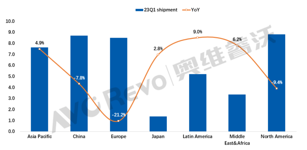 區(qū)域表現(xiàn):成熟市場(chǎng)出貨低迷,新興市場(chǎng)出貨增長(zhǎng)