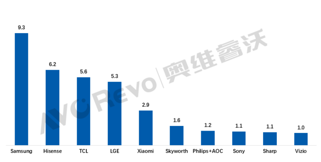 2023Q1全球TV TOP10品牌出貨規(guī)模
