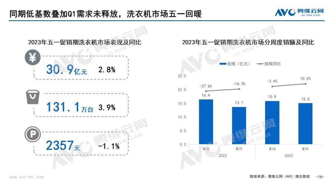 整體來(lái)看,五一市場(chǎng)的復(fù)蘇標(biāo)志著洗衣機(jī)市場(chǎng)的修復(fù)已經(jīng)開(kāi)始,預(yù)計(jì)未來(lái)需求仍將逐步釋放,洗衣機(jī)市場(chǎng)增速將會(huì)繼續(xù)保持緩慢但穩(wěn)健增長(zhǎng)的態(tài)勢(shì)。