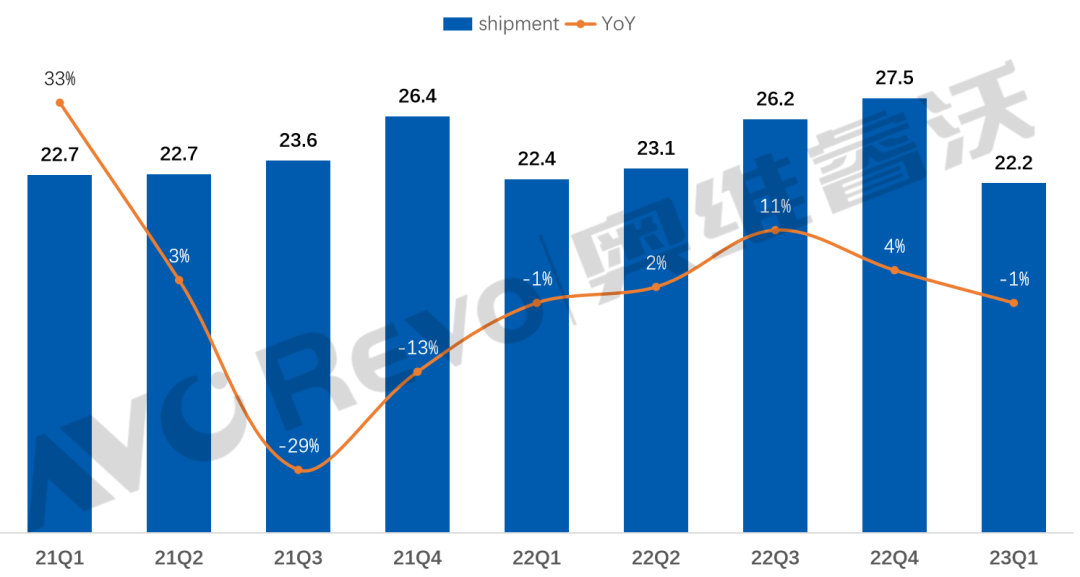 23Q1全球電視代工廠出貨與同比