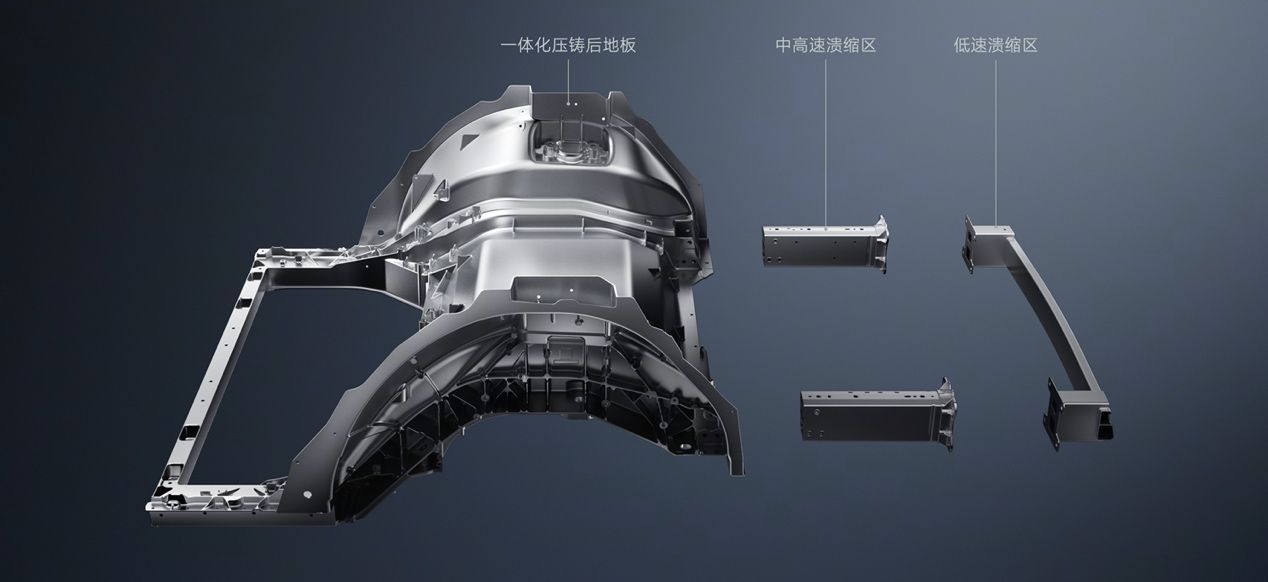 除技術(shù)與材料的創(chuàng)新,小米汽車(chē)克服傳統(tǒng)大壓鑄弊端,采用三段式可維修設(shè)計(jì):「一體壓鑄后地板 + 中高速潰縮區(qū) + 低速潰縮區(qū)」。中低速碰撞中,無(wú)需更換大壓鑄件;而在高速碰撞中,這一設(shè)計(jì)能滿足90km/h的后碰標(biāo)準(zhǔn),超過(guò)了全球的最高標(biāo)準(zhǔn)。