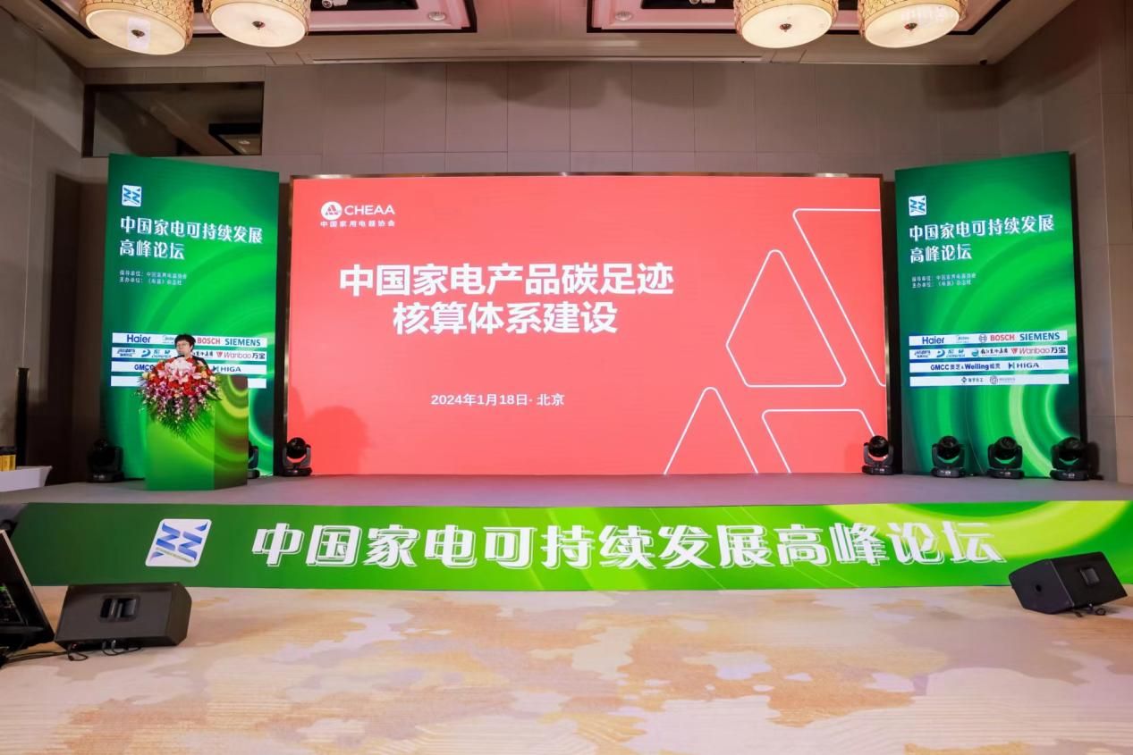 2024年1月18日,由中國家用電器協(xié)會(huì)指導(dǎo)、《電器》雜志社主辦的“中國家電可持續(xù)發(fā)展高峰論壇”在北京隆重召開。會(huì)上,中國家用電器協(xié)會(huì)副秘書長萬春暉介紹了中國家電產(chǎn)品碳足跡核算體系建設(shè)情況,中國家用電器協(xié)會(huì)發(fā)布的全球首個(gè)家電產(chǎn)品碳足跡核算系列標(biāo)準(zhǔn),助力家電行業(yè)低碳綠色發(fā)展。
