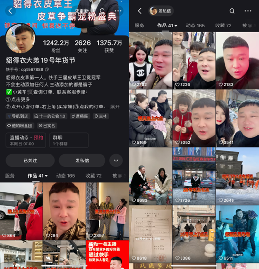 2017年,一次偶然的機會,貂得衣發(fā)現(xiàn)身邊很多人都會在閑暇時間刷快手,一些老鐵拍攝的段子人氣更是高得“可怕”?!爱?dāng)時我就開始琢磨利用快手推廣自家皮草,雖然那時候還沒啥人在網(wǎng)上賣皮草,但早起的鳥兒有蟲吃,這反倒激發(fā)了我想把皮草帶入快手的想法和沖勁。”他回憶道。