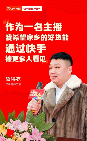 主播“貂得衣皮草王”為快手商城年貨專列活動致辭