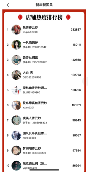 如今,“一只燒鵝仔”已成為快手電商新國(guó)風(fēng)服飾垂類(lèi)短視頻標(biāo)桿商家,其2023年單場(chǎng)GMV最高超百萬(wàn),12月月度GMV同比增長(zhǎng)185%,在本次快手新年新國(guó)風(fēng)活動(dòng)中更是登榜“店鋪熱度排行榜”前列。