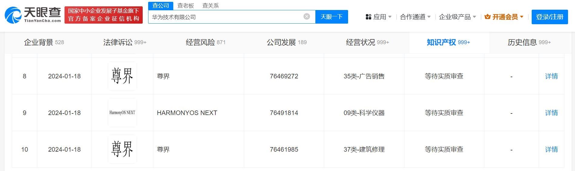 [丁科技網(wǎng)觀察]日前,華為技術(shù)有限公司申請注冊“合界”商標(biāo),國際分類為運(yùn)輸工具,當(dāng)前商標(biāo)狀態(tài)為等待實(shí)質(zhì)審查。不止“合界”,在運(yùn)輸工具分類項(xiàng)下,2024年以來,華為已申請20個(gè)“界”字相關(guān)中文商標(biāo),其中有“臻界”“閱界”“疆界”“觀界”“御界”“道界”“漢界”“蔚界”等。整體來看,華為申請的“界”字商標(biāo)已超50個(gè)。