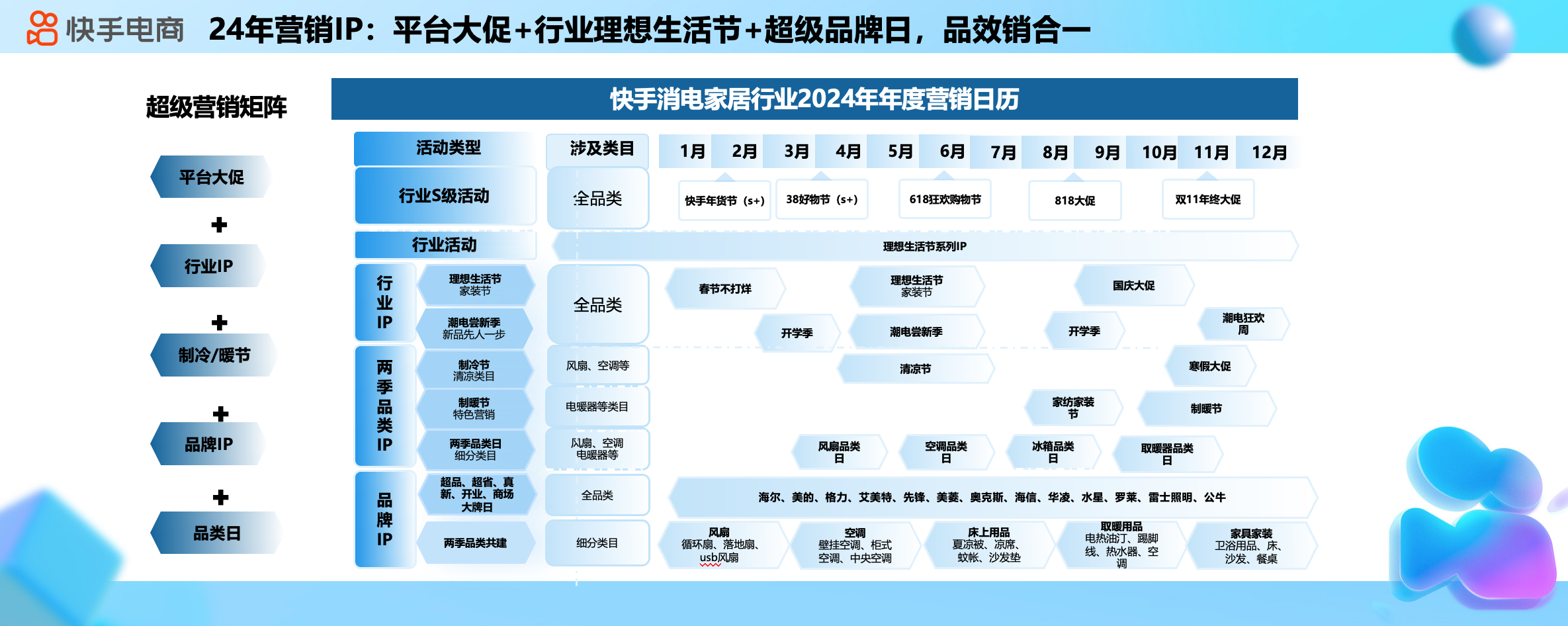 面向2024年,快手電商消電家居行業(yè)將以用戶為中心,建立優(yōu)價好物的消費者心智,在充分擴充品類及品牌兩端供給的同時,升級全域經(jīng)營策略,鼓勵商家做好內(nèi)容場域和泛貨架場景經(jīng)營,借助快手信任社區(qū)生態(tài),做好品牌營銷,提升品牌在快手站內(nèi)的知名度。