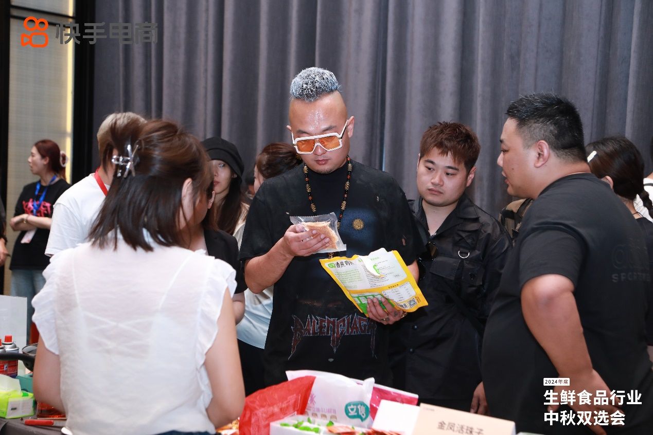 (快手生鮮食品達人野哥在雙選會現(xiàn)場選品)