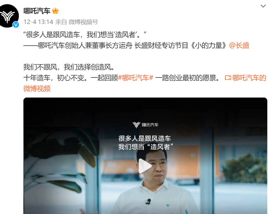 丁科技網(wǎng)注意到,或許是老周的“刺激”起到了作用,過(guò)去一年來(lái),張勇在互聯(lián)網(wǎng)上逐漸找到了“感覺(jué)”,為哪吒品牌帶來(lái)了不少關(guān)注。然而,面對(duì)競(jìng)爭(zhēng)日趨白熱化的新能源汽車市場(chǎng),張勇的努力還是沒(méi)有起到力挽狂瀾的作用,哪吒汽車陷入了不小的危機(jī)中。于是,張勇下課,創(chuàng)始人、董事長(zhǎng)方運(yùn)舟接任CEO。