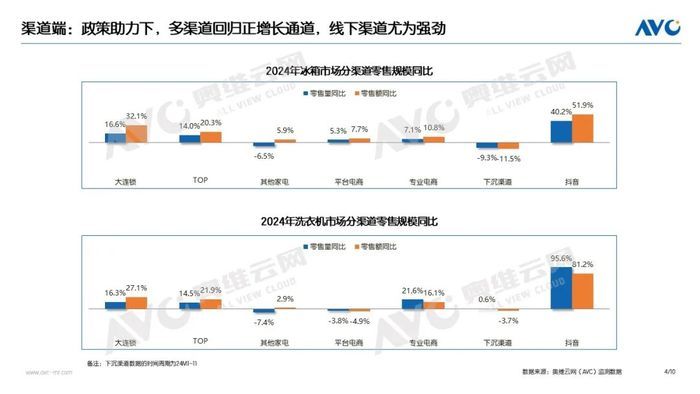 從渠道端看,各零售通路享受政策紅利出現(xiàn)一定的參差,但相比1-8月,各渠道的規(guī)模表現(xiàn)均有了較大幅度的提升。線下以大連鎖、TOP為代表的核心渠道實(shí)現(xiàn)規(guī)模、結(jié)構(gòu)雙增長,抖音渠道則在規(guī)模增速上一騎絕塵。