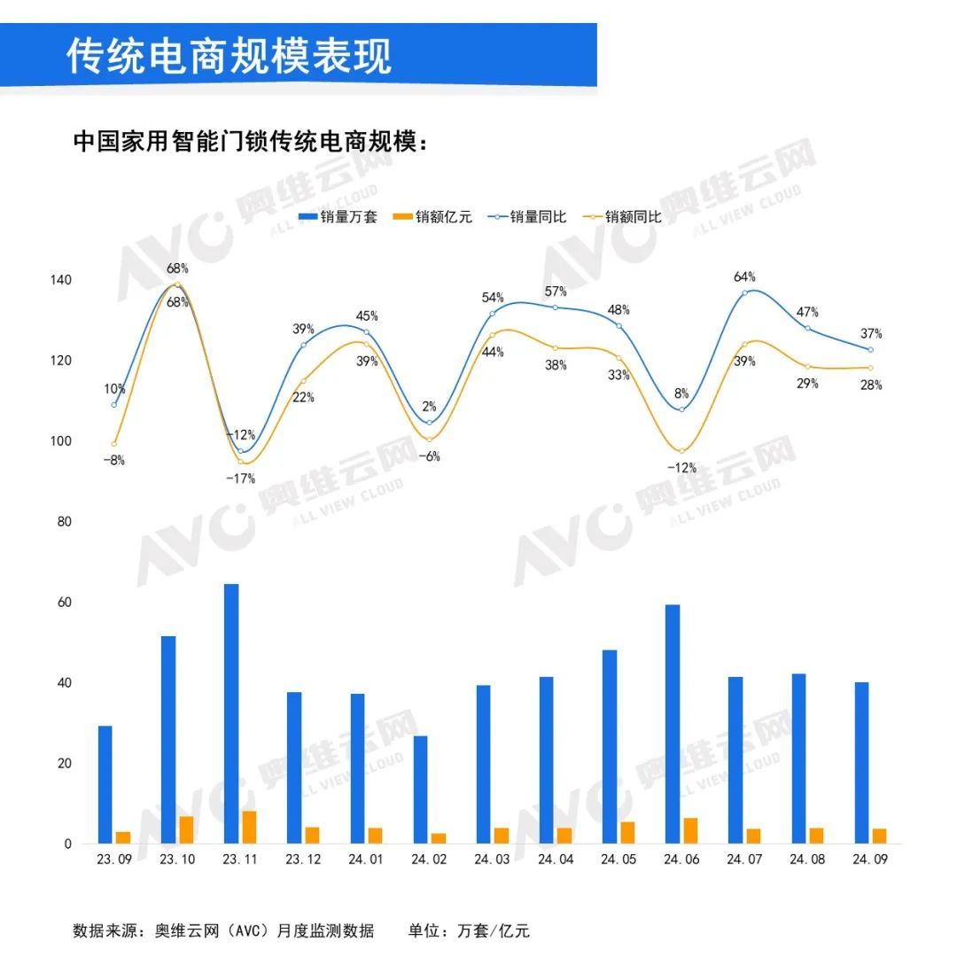 奧維云網(wǎng)(AVC)《2024年9月中國(guó)家用智能門鎖線上市場(chǎng)總結(jié)報(bào)告》顯示,9月傳統(tǒng)電商智能門鎖零售量規(guī)模同比增長(zhǎng)37%;零售額規(guī)模同比增長(zhǎng)28%,較高的增長(zhǎng)率意味著智能門鎖行業(yè)仍有較大的發(fā)展空間和潛力。