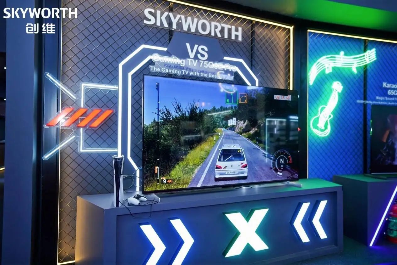 在Mini LED展區(qū),75G6E Pro連接了最新款PS5主機,現(xiàn)場演示賽車游戲的高幀率與低延遲效果,為觀眾帶來近乎電競級的視覺體驗;75G6E則通過專人演示K歌功能,搭配創(chuàng)維聲學(xué)系統(tǒng),為家庭娛樂與社交場景提供了即開即用的完整解決方案,成為現(xiàn)場K歌打卡地。