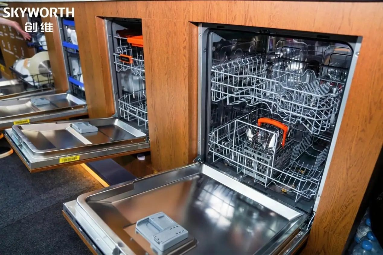 除了作為智慧家庭中樞的電視產(chǎn)品,創(chuàng)維此次展出的全品類家電同樣精彩紛呈,共同構(gòu)筑了完整的智慧生活解決方案。創(chuàng)維冰箱冷柜、洗衣機、干衣機與洗碗機等明星產(chǎn)品齊聚展臺。